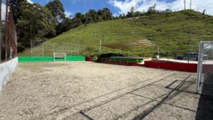 Con el objetivo de ofrecer escenarios dignos para la recreación, el deporte y la integración, se ejecutaron trabajos como la instalación de filtros de drenaje, remodelación de las porterías de fútbol, rampa de acceso, arreglo de malla eslabonada, nivelación y limpieza y cambio de cubierta por tejas de zinc, con el fin de propiciar un espacio óptimo para la práctica del fútbol.