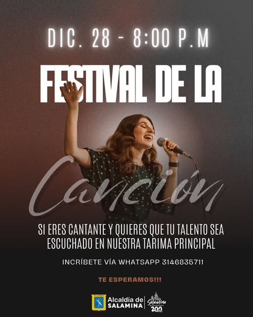 El Festival Municipal de la Canción se cumple el Salamina el próximo domingo 28 de diciembre.
