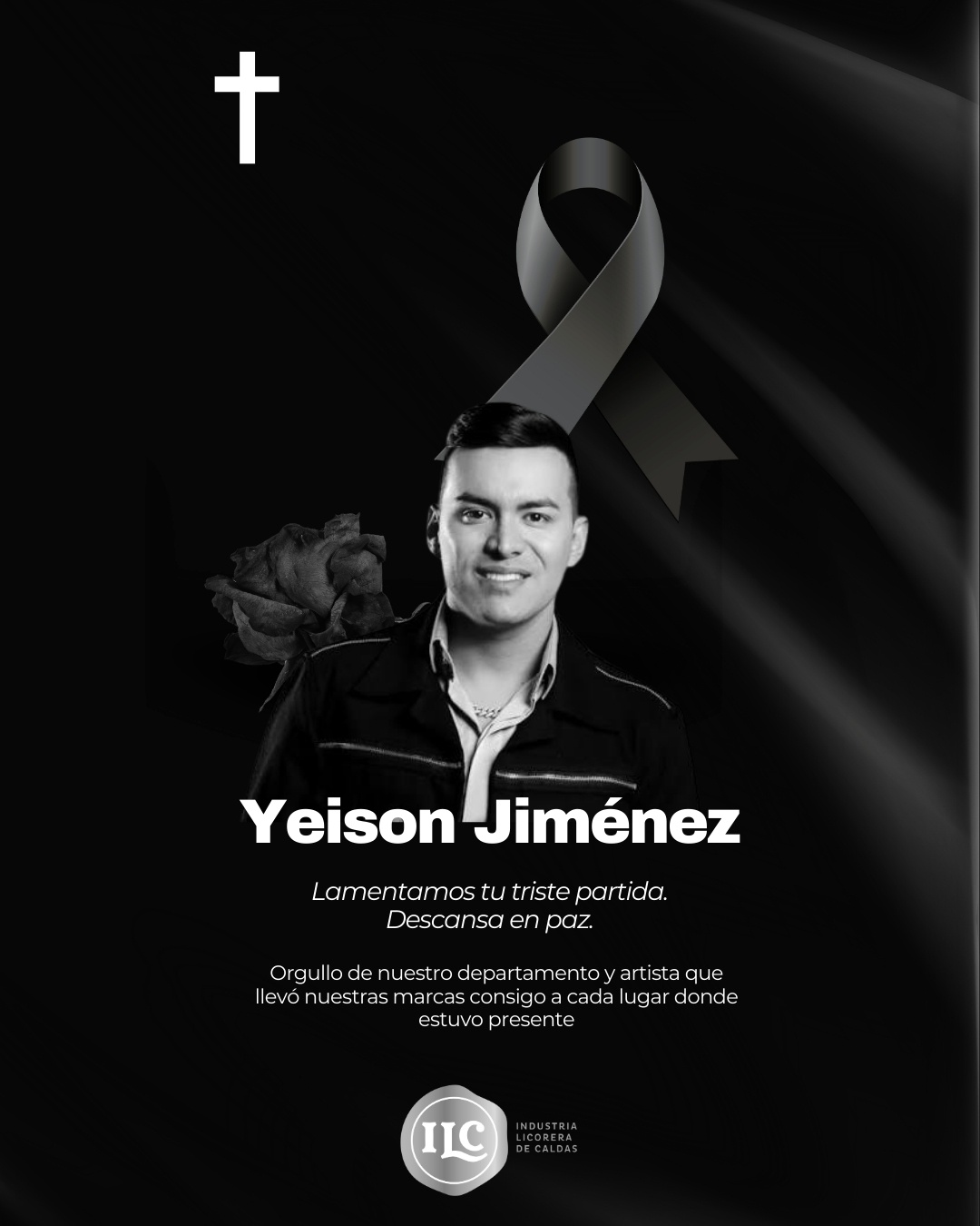 El gerente general de la Industria Licorera de Caldas, Diego Angelillis Quiceno, su equipo directivo y grupo de colaboradores lamentan el fallecimiento del cantante caldense Yeison Jiménez quien murió esta tarde en un trágico accidente en Boyacá, según un comunicado de prensa dado a conocer por la factoría.